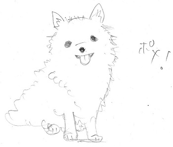 朝ポメコを見た事だし、私も描いてみよう、と思い、休み時間にポメコを描いてみました。