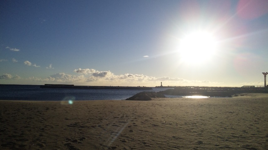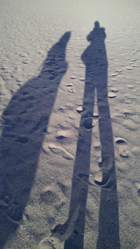 ②浜辺で影法師with姉。